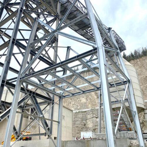 Wir konstruieren, fertigen und montieren Stahlbauten für die Aufbereitungstechnik – wie beispielsweise Gerüste für Brecher und Siebe – und übernehmen die Einhausung von Gebäuden. Durch eine intensive Zusammenarbeit mit allen führenden Maschinenbauern in der Stein- und Erdenindustrie integrieren wir auch Bestandteile wie Brecher und Siebmaschinen in neue oder bestehende Anlagen.