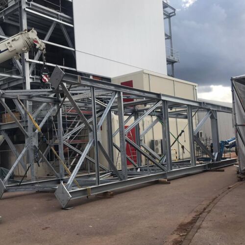 Die hierzu notwendigen Stahlgebäude und -gerüste werden von unserer hauseigenen Konstruktions- und Statikabteilung entworfen und geprüft. Die Fertigung der Einzelteile findet am Standort in Beckum statt. Von hier aus werden sie mit unserer Spedition zum Bestimmungsort transportiert wo sie von unseren Mitarbeitern fachmännisch montiert werden.